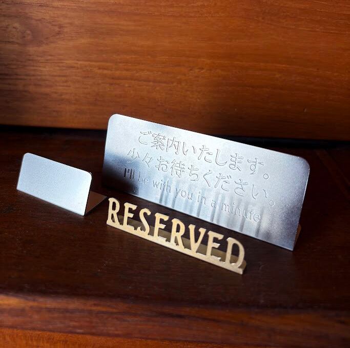 洋白板(白真鍮)のオーダーメイドの卓上サインプレートです。