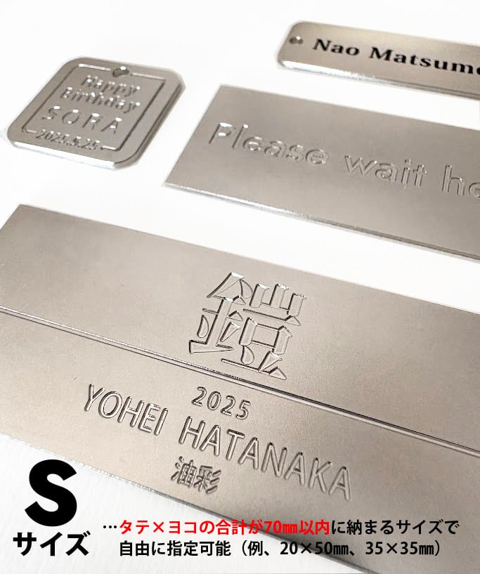 お好きな文字を刻印できるオーダーメイドの洋白プレート1㎜厚Sサイズ