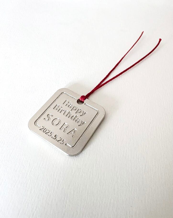 厚さ0.8mmの洋白(ニッケルシルバー)プレートにお好きな文字を彫刻します。