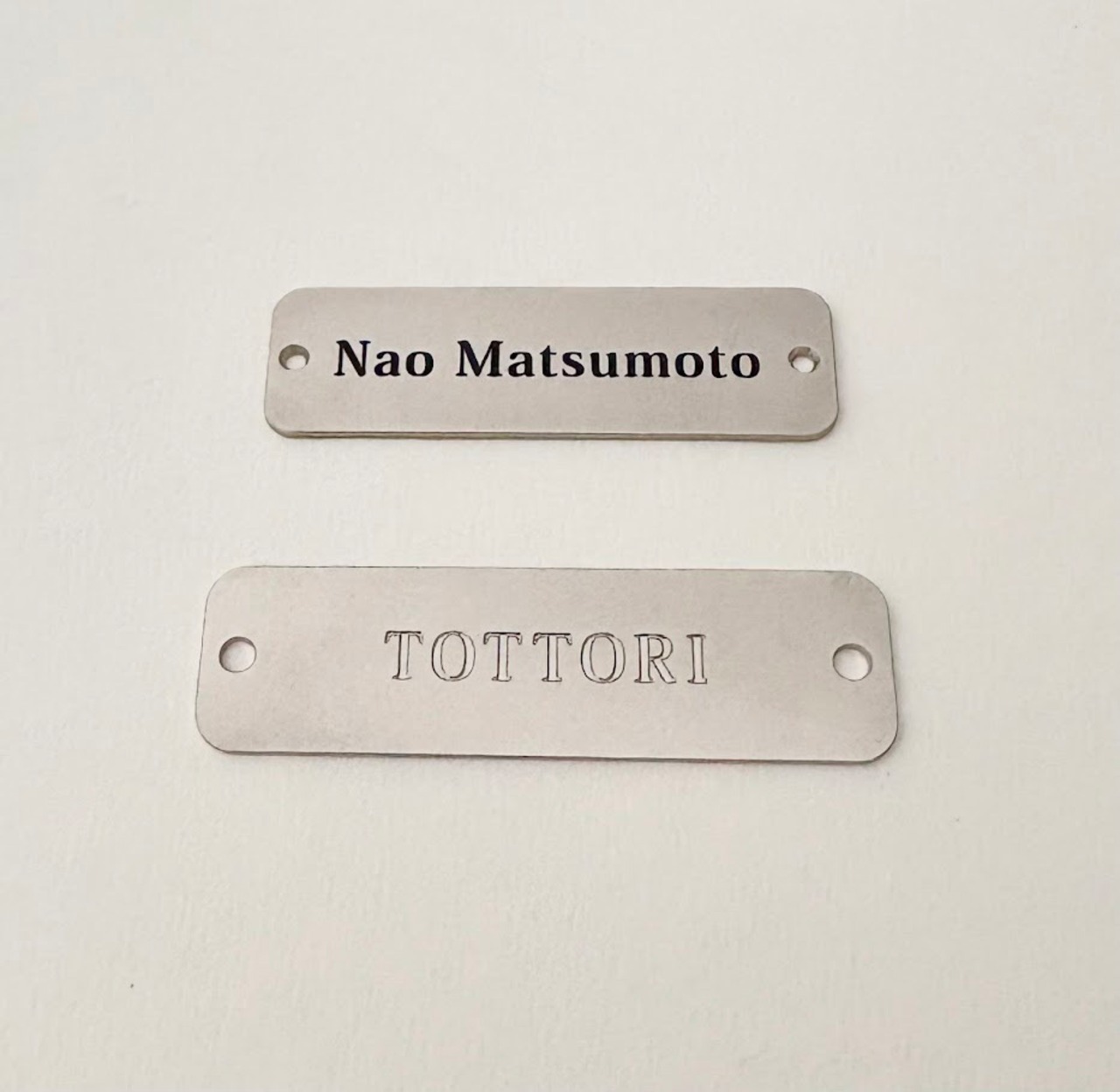 厚さ1mmの洋白(ニッケルシルバー)プレートにお好きな文字を彫刻します。