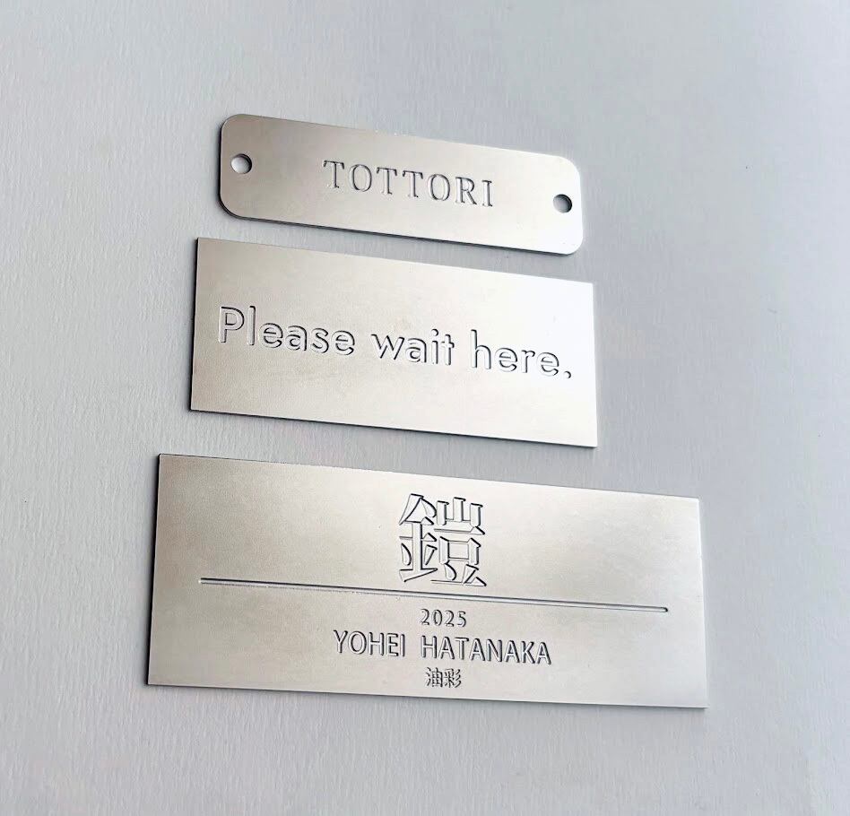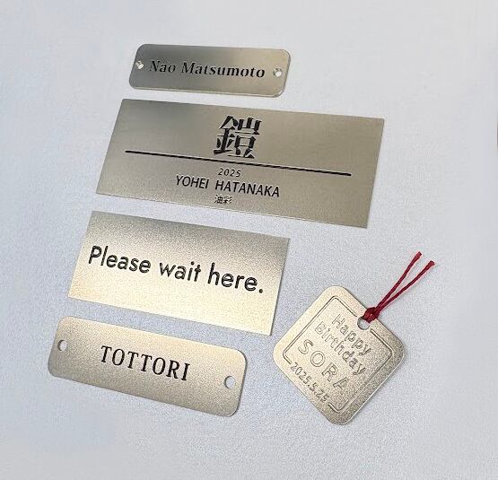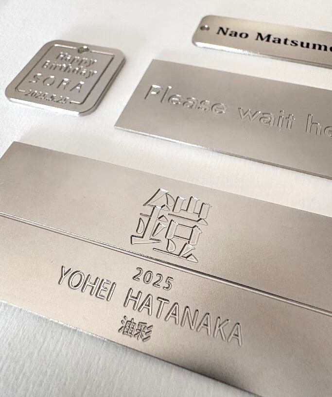 厚さ0.8mmの洋白(ニッケルシルバー)プレートにお好きな文字を彫刻します。